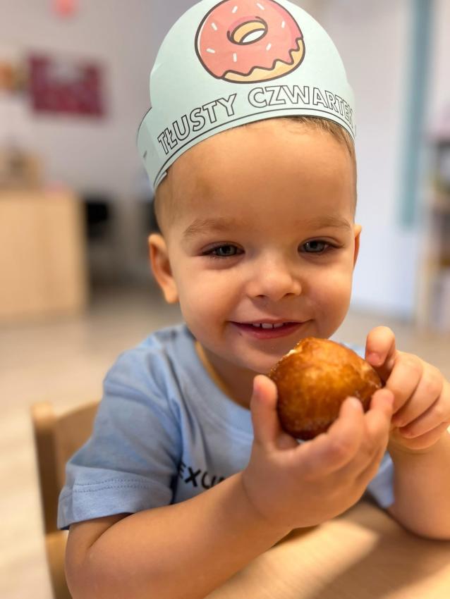 Dzieci z radością świętowały Tłusty Czwartek! Próbowały pączków, oblizując paluszki .