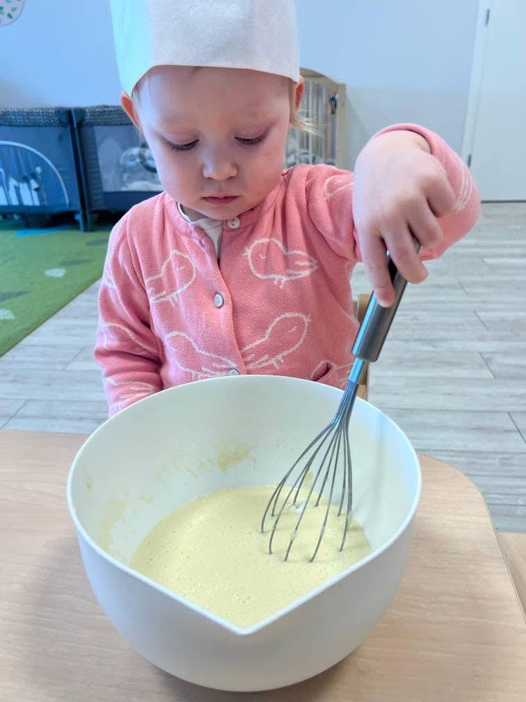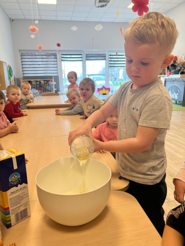Dzieci z radością przygotowały ciasto do gofrów. Gofry były tak pyszne ze dzieci zjadły je w mgnieniu oka, co sprawiło, że było trudno uchwycić moment ich zjedzenia na zdjęciu!