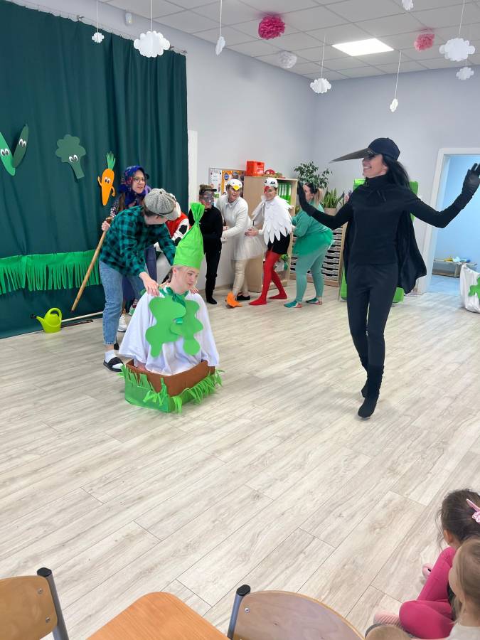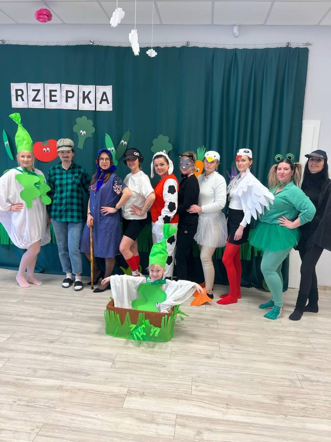 Z okazji Międzynarodowego Dnia Teatru dzieci miały okazję uczestniczyć w wyjątkowym przedstawieniu pt. Rzepka, które zostało przygotowane przez ciocie. Pełna humoru inscenizacja wciągnęła małych widzów w świat wiersza Juliana Tuwima, ucząc ich współpracy i radości z wspólnego działania. Barwne stroje, zabawne dialogi i zaangażowanie aktorów sprawiły, że spektakl dostarczył wszystkim wielu emocji i niezapomnianych wrażeń!