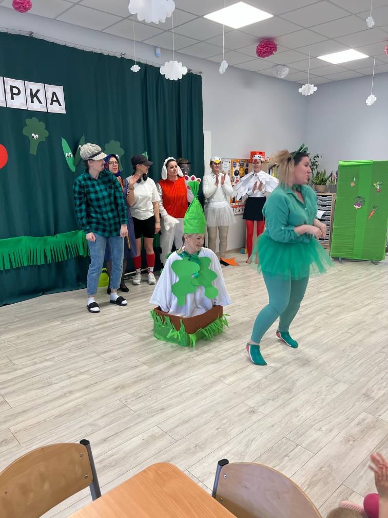 Z okazji Międzynarodowego Dnia Teatru dzieci miały okazję uczestniczyć w wyjątkowym przedstawieniu pt. Rzepka, które zostało przygotowane przez ciocie. Pełna humoru inscenizacja wciągnęła małych widzów w świat wiersza Juliana Tuwima, ucząc ich współpracy i radości z wspólnego działania. Barwne stroje, zabawne dialogi i zaangażowanie aktorów sprawiły, że spektakl dostarczył wszystkim wielu emocji i niezapomnianych wrażeń!